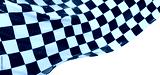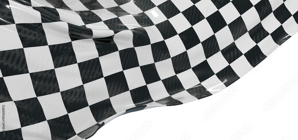Close-up of a checkered racing flag waving in the wind. Symbol of speed, victory, and the finish line. Isolated on white