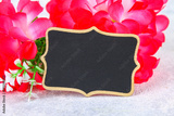 March 8, International Women's Day. Chalkboard with pink flowers. Copy space