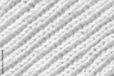 Knitting from woolen threads handmade. The texture is white, the background of the canvas is connected from the thread.