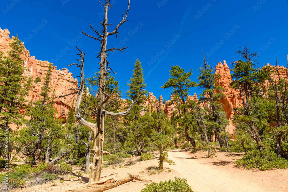 Bryce Canyon National Park - Hiking on the Queens Garden Trail and Najavo Loop into the canyon, Utah, USA.