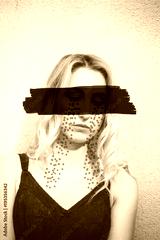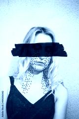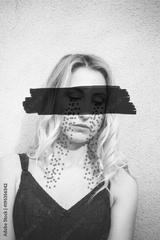 Portrait of a young beauty woman expressing pain - Sorority concept - Geometric graphic edition