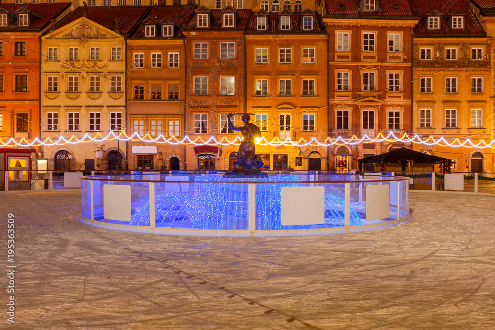 Warsaw. Market square at night.