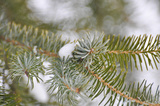 Fir tree covered with snow, Fir branch with snow, symbol of winter
