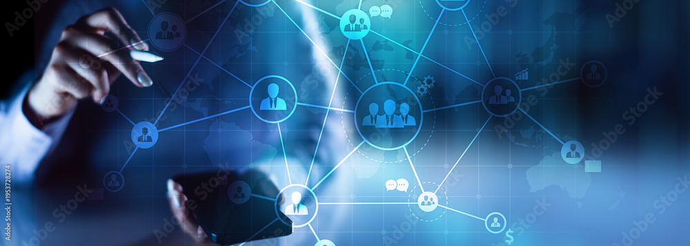 Global Business Networking and Communication Visualized on a Futuristic Digital Interface.