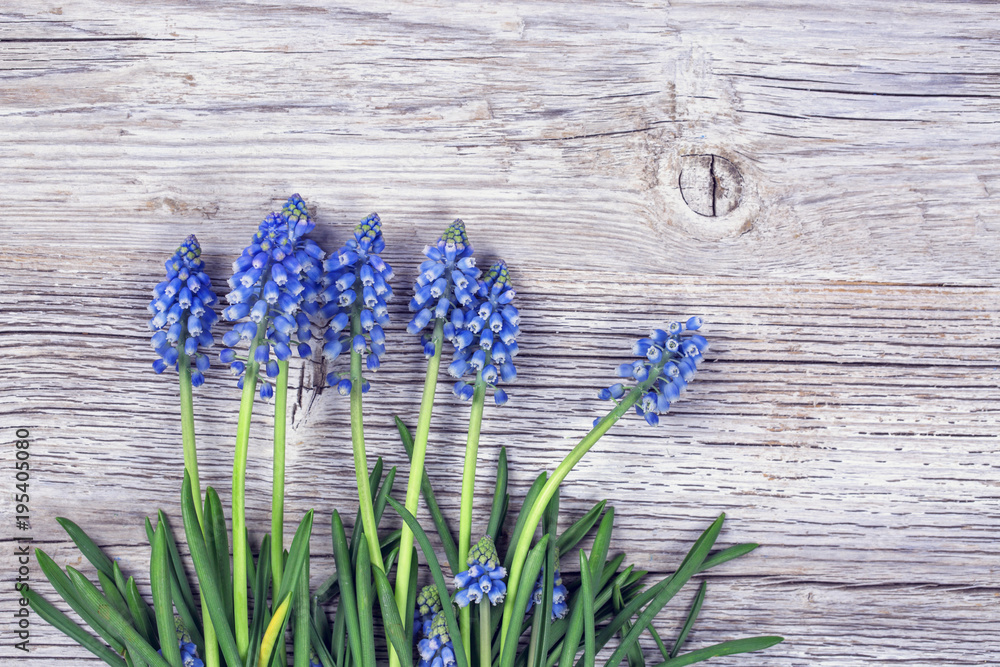Blue muscari flowers