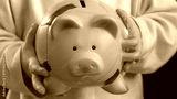 Financial education concept - saving money from a small one child, piggybank in a small hands