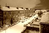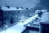 View from the top of the evening courtyard of the city of Glasgow in winter