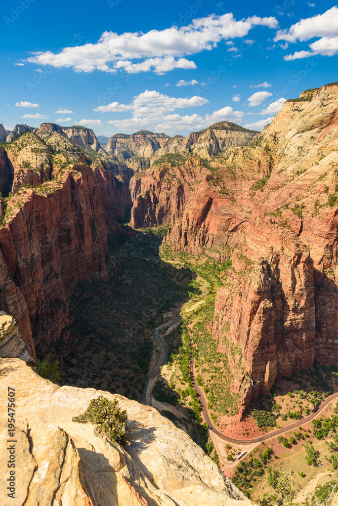 Beautiful scenery in Zion National Park with the virgin river, Hiking along the Angel's Landing trail, Utah, USA