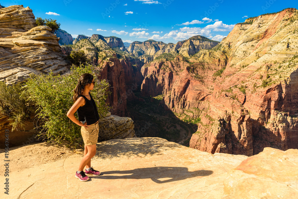 Beautiful scenery in Zion National Park with the virgin river, Hiking along the Angel's Landing trail, Utah, USA