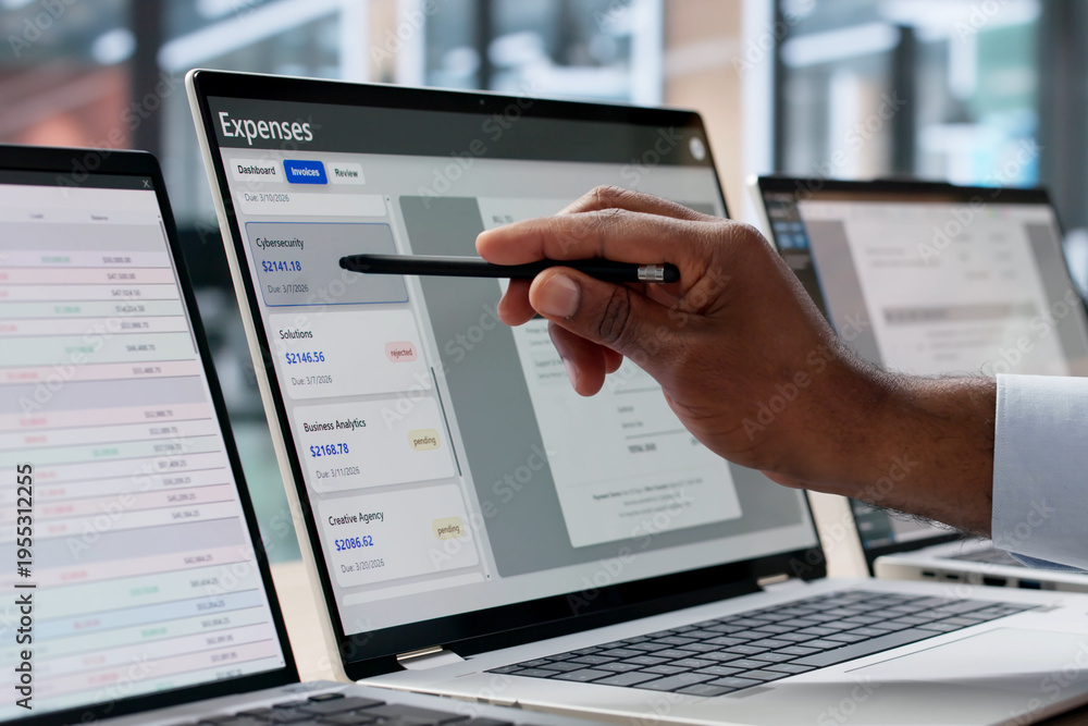 Young African Finance Manager Uses Software For Expense Tracking And Reporting