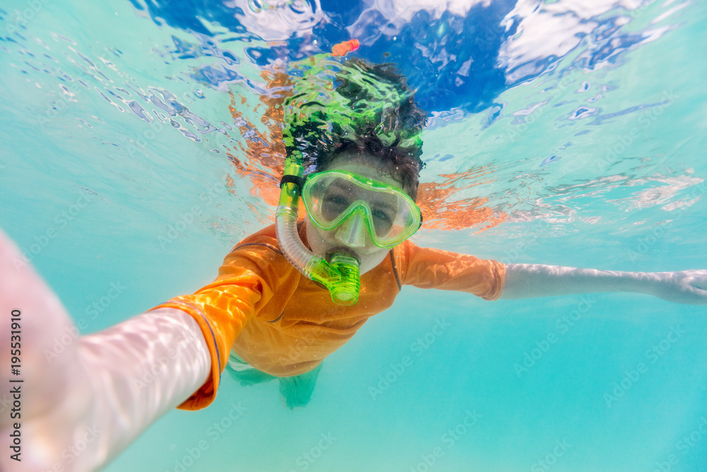 Boy swimming underwater