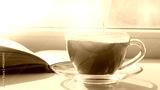 Pouring hot water into a cup of coffee on a window sill on a sunny day, a book.