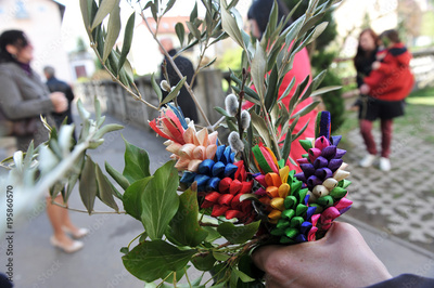 Easter traditions - green and colorful bouquets symbolizing palm branches.