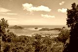 Panoramic view of the coastline of the Seychelles Islands and Ed