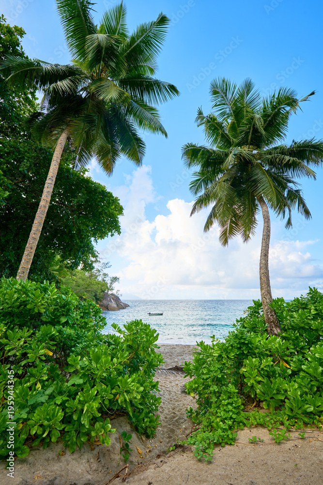 Sunny day on fantastic wild Anse Major beach, Mahe island, Seychelles. Summer holiday concept.