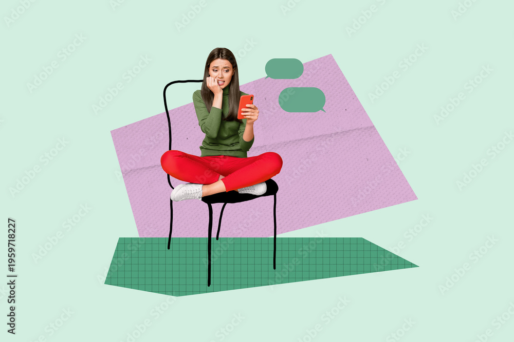 3d image sketch art full zine photo collage of happy girl guy stand bubble communication chat notification dialogue talk