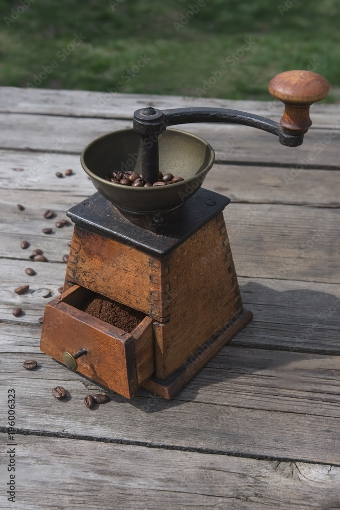 Manual coffee mash with vintage grinder