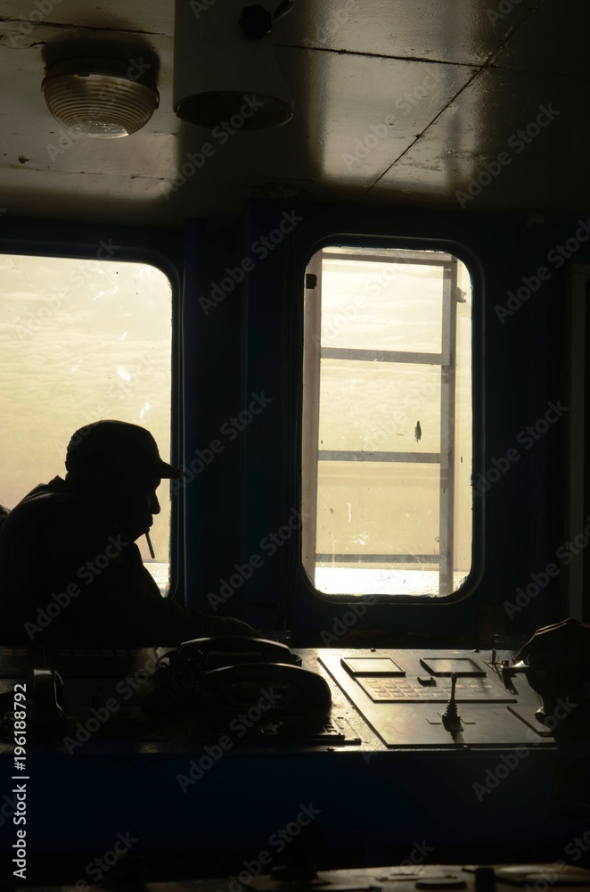 Cabine de pilotage du ferry de Banjul à Barra (Gambie)