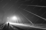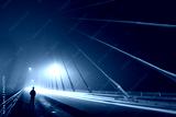 Long exposure in foggy night on iron bridge