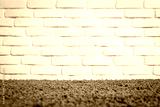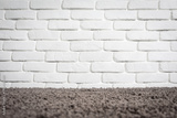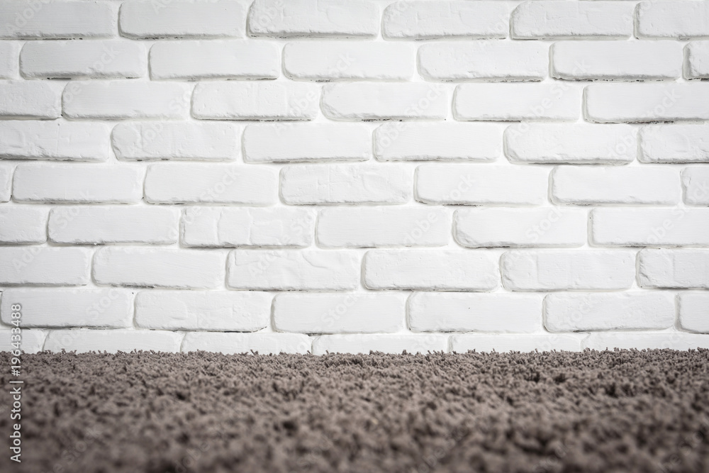 White brick wall and brown carpet floor