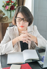 Teenage girl working on laptop in home office