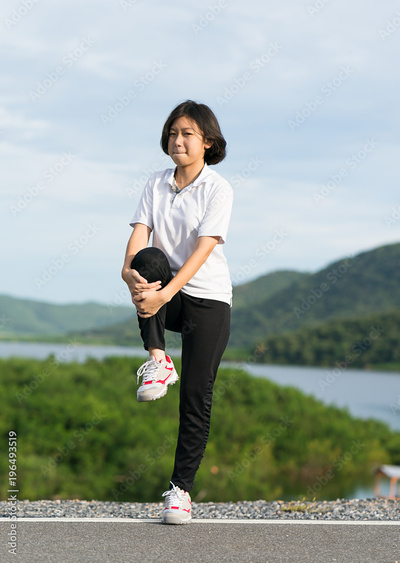 Woman doing exercising and warm up outdoor