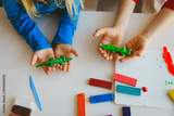 kids playing with clay molding shapes