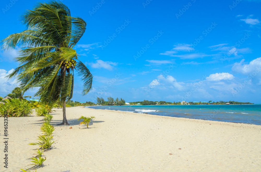 Paradise beach in Placencia, tropical coast of Belize, Caribbean Sea, Central America.