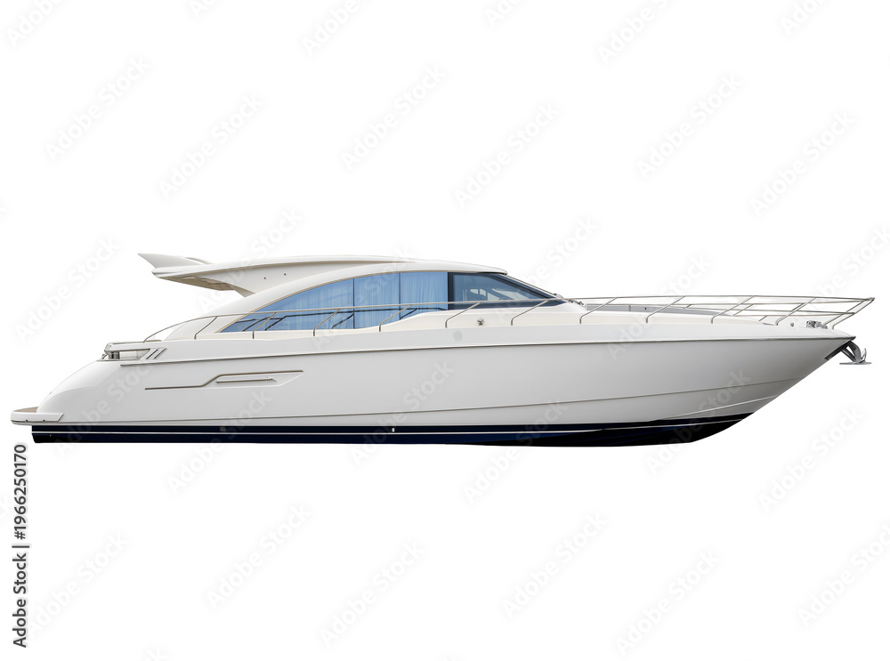 Isolated modern white luxury yacht or expensive sleek motorboat for sea travel and vacation