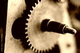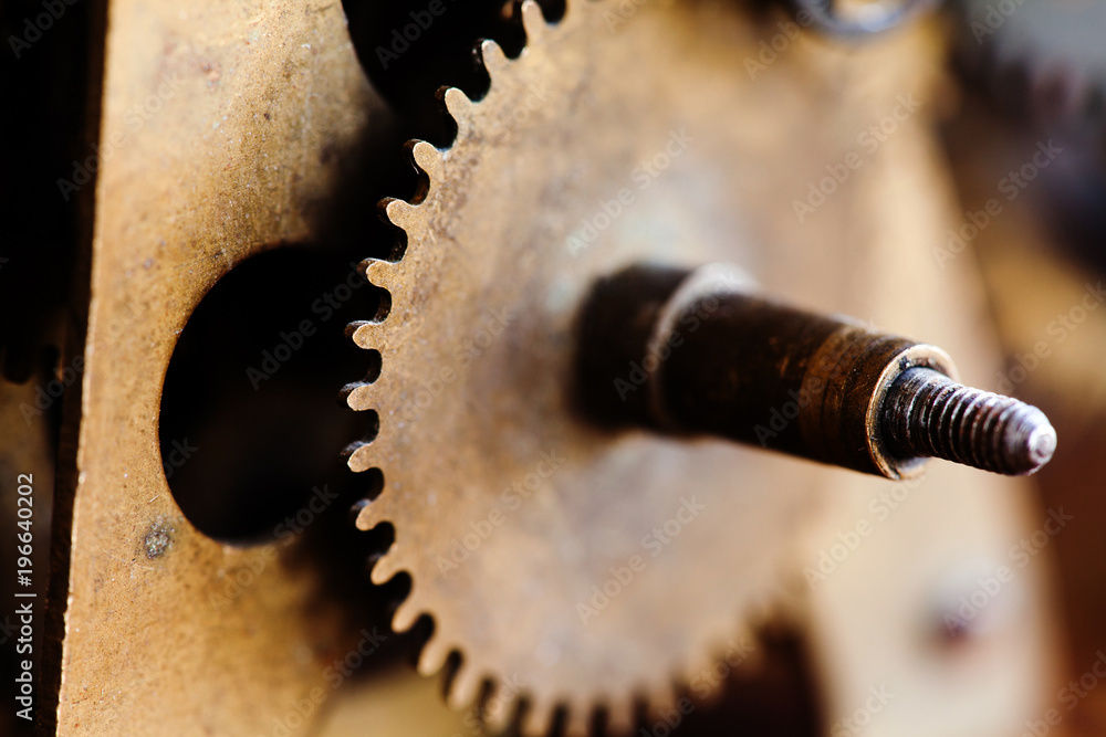 Vintage cog wheel gear teeth macro view. Shallow depth field, selective focus.