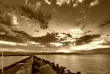Harbour of Heraklion with rock mole at sunset, Crete, Greece.