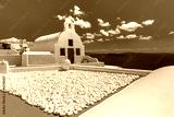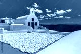 Picturesque view of white church in Oia or Ia, island Santorini, Greece