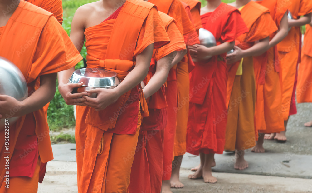 unrecognizable monk walking on street.