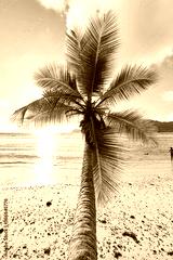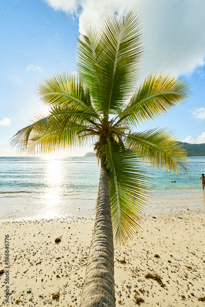 coconut palm tree on beach Baie Lazare, seychelles