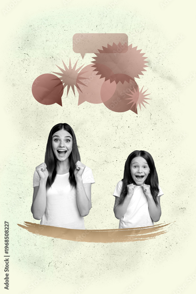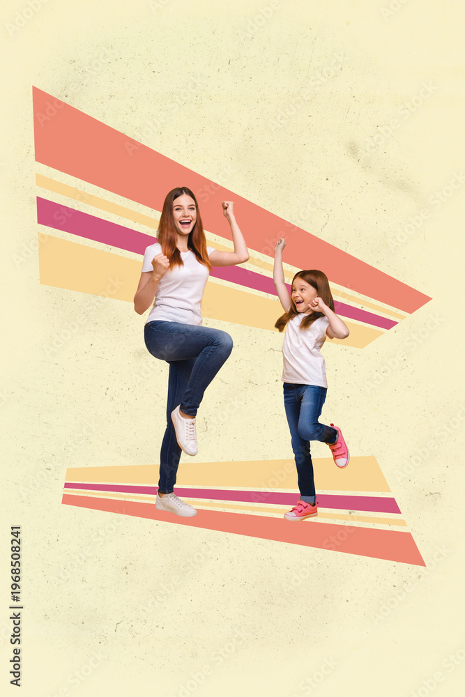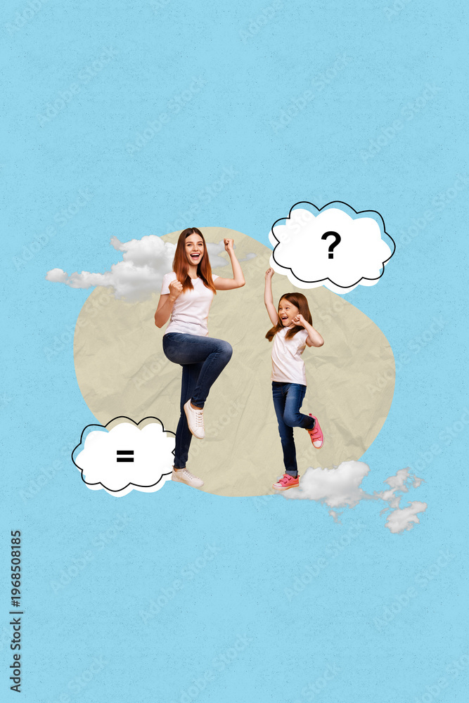 Sketch poster art photo collage of happy businesswoman businessman stand geometric figure development career progress target