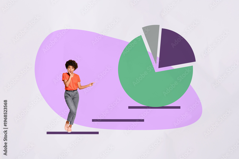 3d pop image zine art collage of happy businesswoman businessman stand career ladder development diagram statistics progress