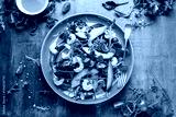 Fresh Avocado, shrimps salad with lettuce green mix, cherry tomatoes, herbs and olive oil, lemon dressing. healthy food