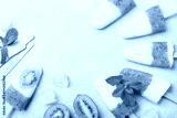 Fruity homemade ice cream or popsicles from kiwi smoothie and yogurt top view. Summer refreshing food.