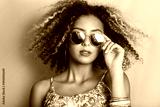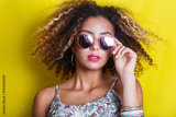 Fashion Beauty afro american Model Girl with sunglasses on yellow background