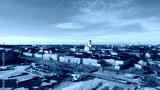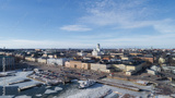 Aerial view of beautiful city Helsinki at winter. Blue sky and clouds.