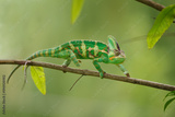 Colorful chameleon walking on tree branch with green background. Yemen chameleon lizard.