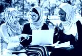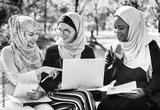 Group of islamic friends discussing and working together