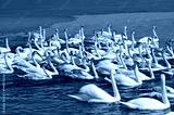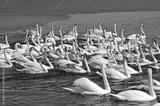 Group of white swans swimming in water