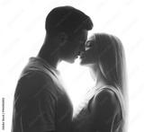 Young loving couple on white background