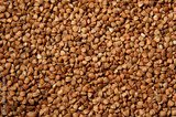 Buckwheat grains background texture - healthy food. Macro photo