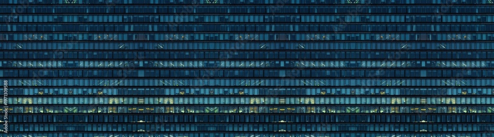 Multi-stories office building at night with worker working overtime. late night at office. lighting and working people within
