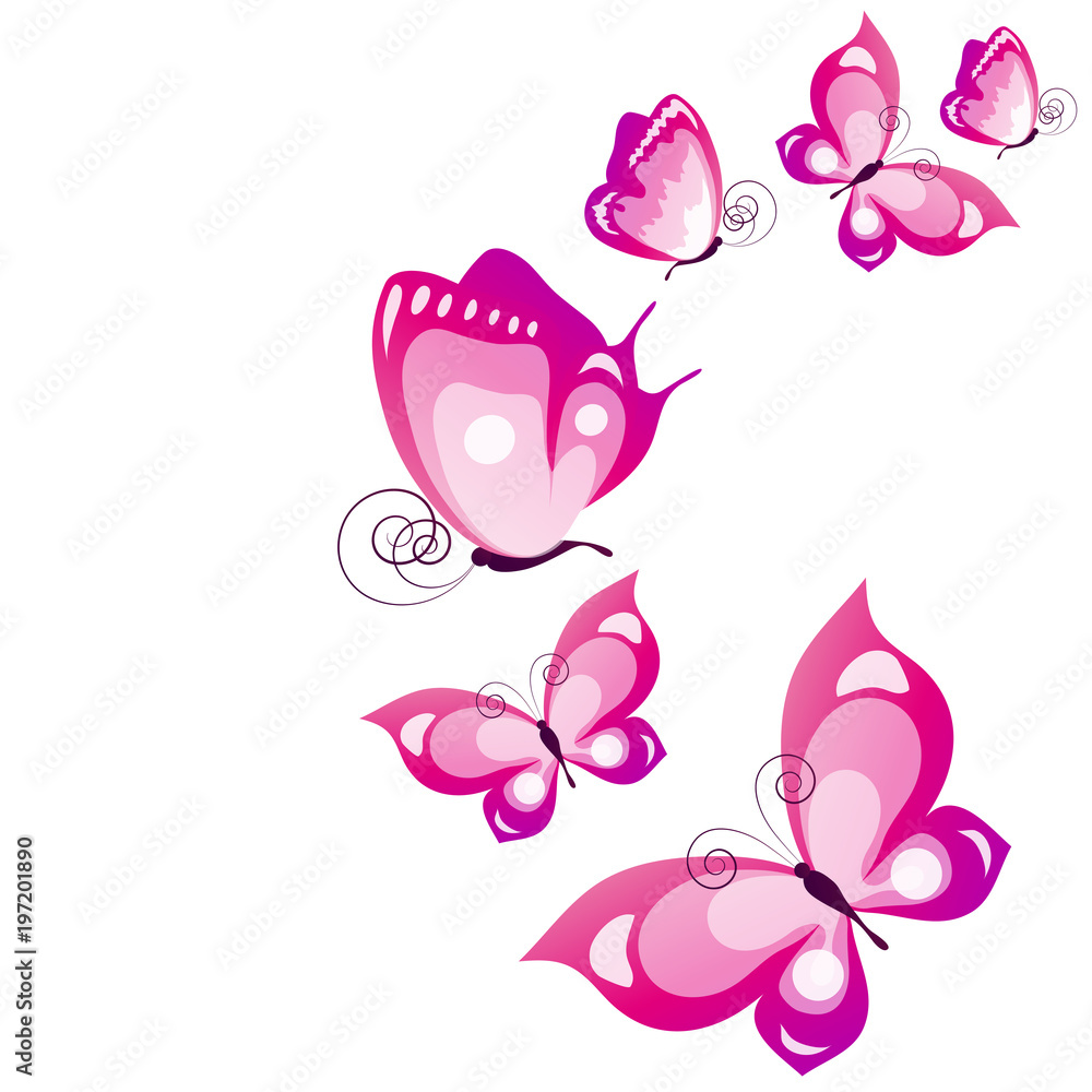 beautiful pink butterflies, isolated on a white