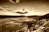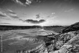 Sunset on icelandeic tundra with snow and ice