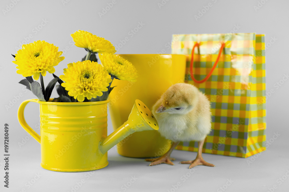 Wielkanocny kurczak indyka na turkusowym i szarym tle