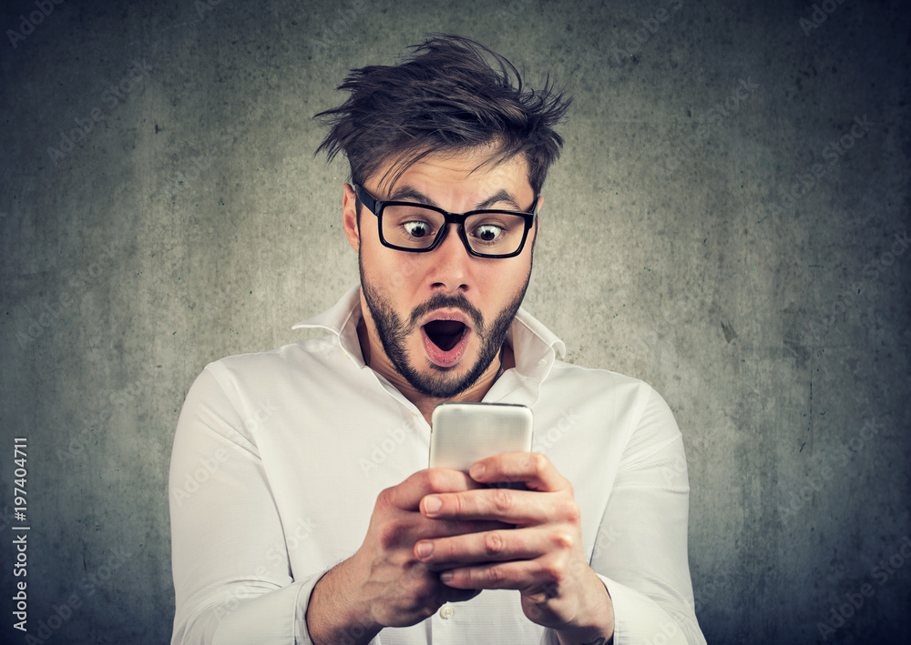 Shocked man having great news on phone